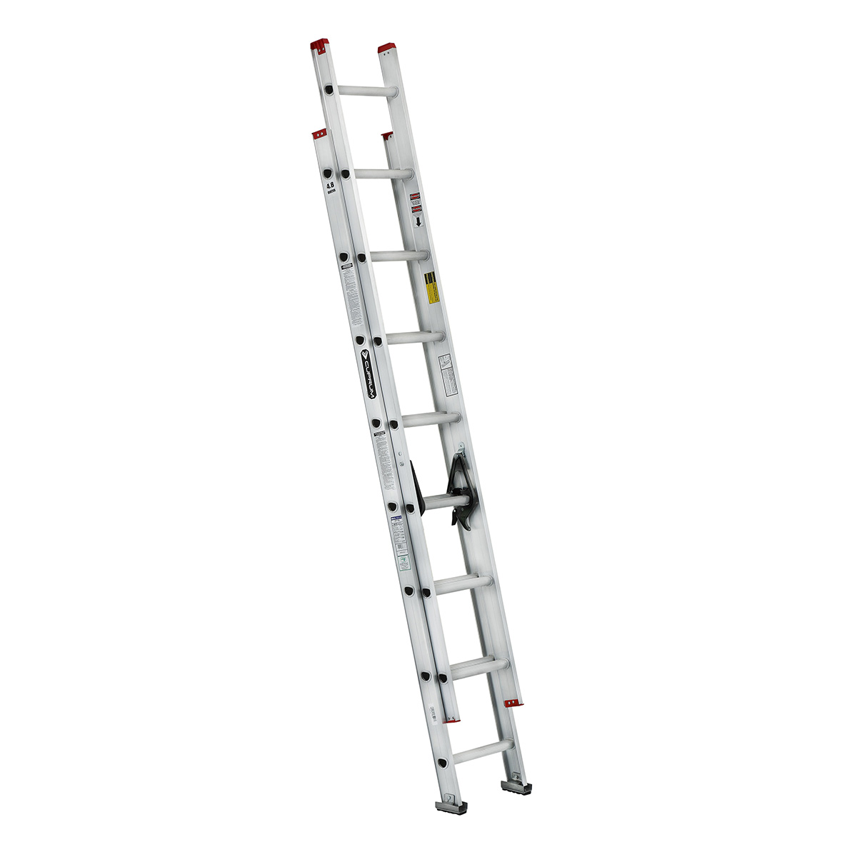 Escalera de extensión de aluminio con peldaño en "D" de 16 pies de altura y capacidad de carga 150 Kg. Tipo III