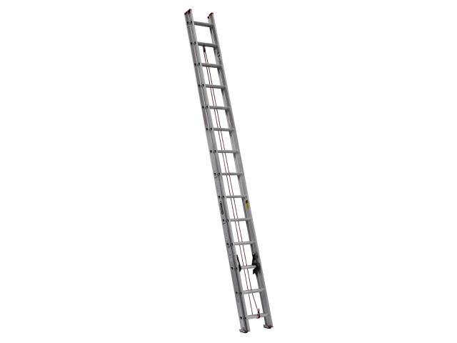 Escalera de extensión de aluminio con peldaño en "D" de 28 pies de altura y capacidad de carga 150 Kg. Tipo III