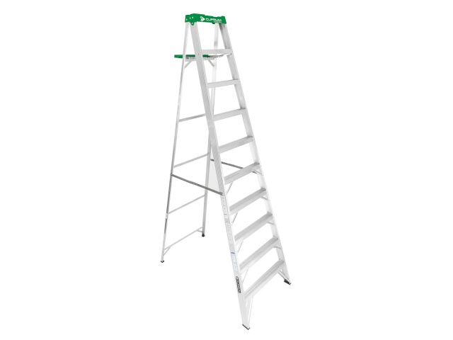 Escalera de tijera doble de aluminio con tapa metálica de 8 pies de altura y capacidad de carga 175 Kg.