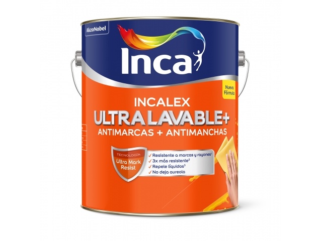 (*) Resistencia relativa al desgaste de Incalex Ultralavable comparada con un látex interior mate Premium, cuando es sometida a la abrasión cíclica durante la remoción de manchas.