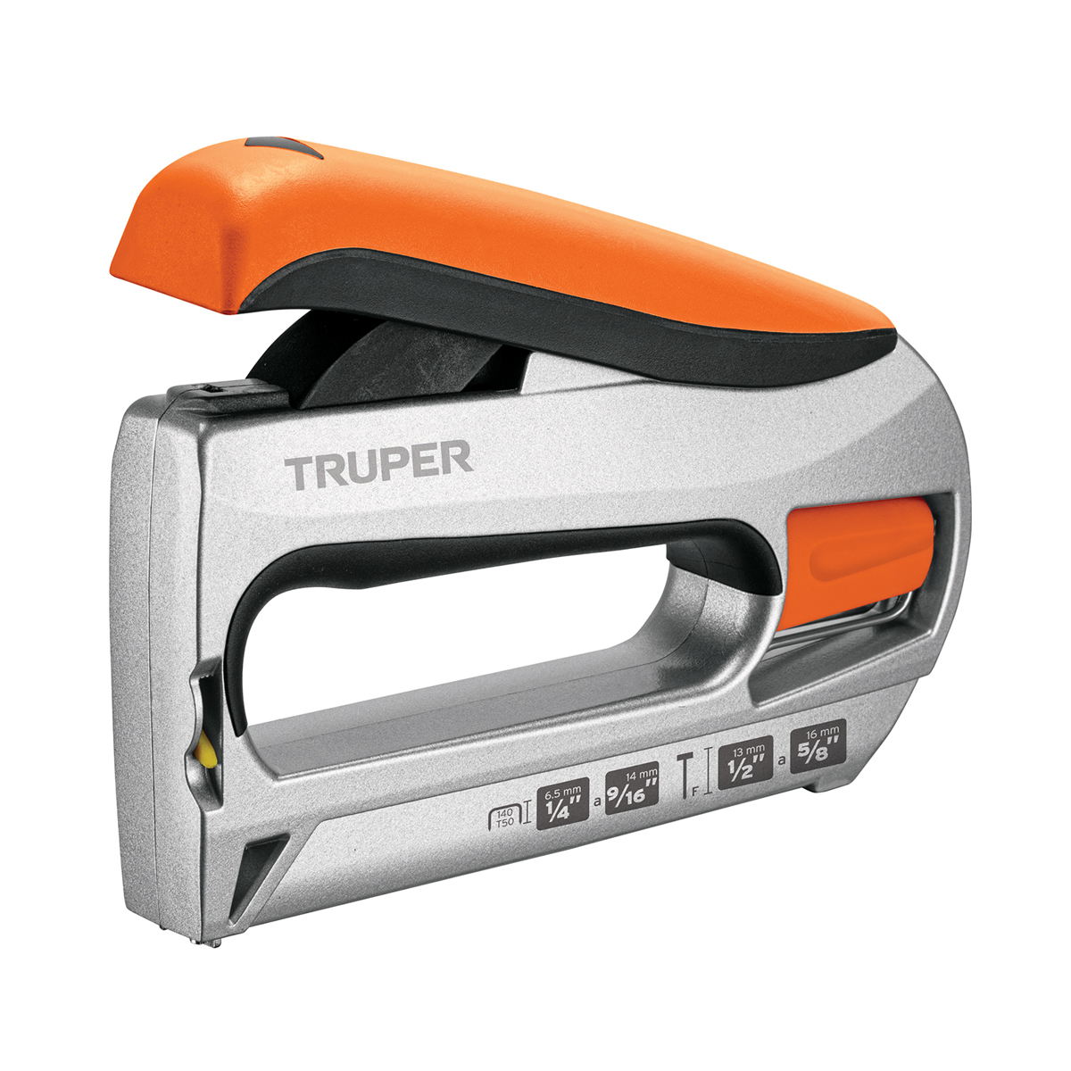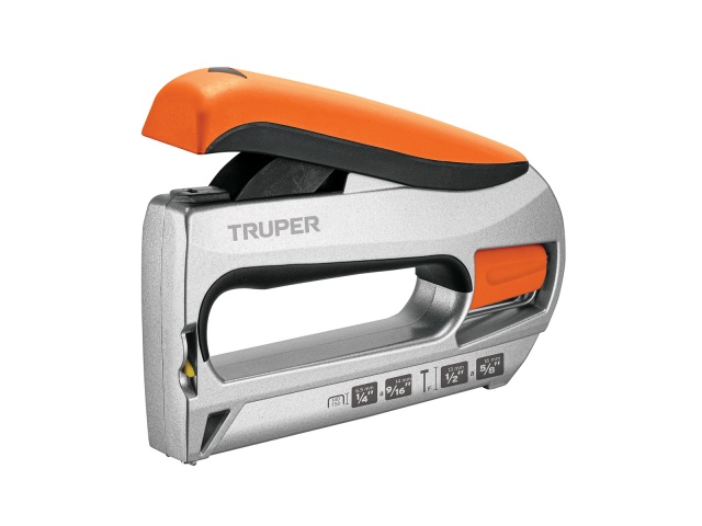 • Cuerpo ligero de aluminio y gatillo ergonómico de fácil accionamiento, para engrapar con menor esfuerzo