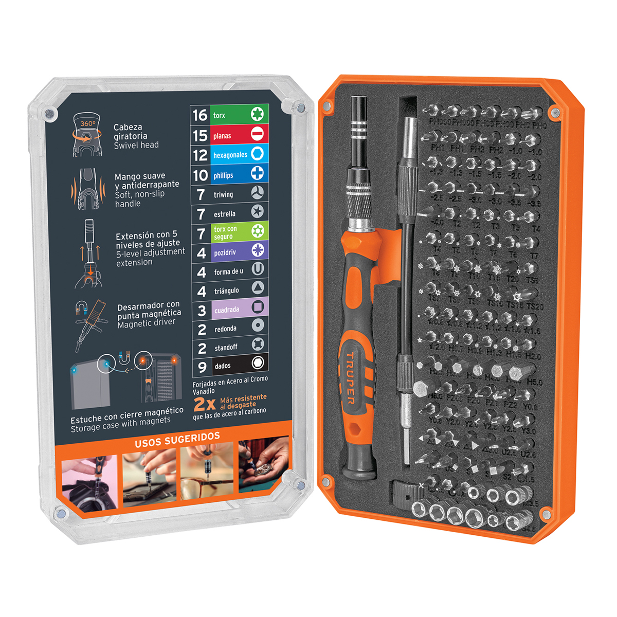 • Puntas de acero al cromo vanadio 2X más resistente al desgaste que el acero al carbono