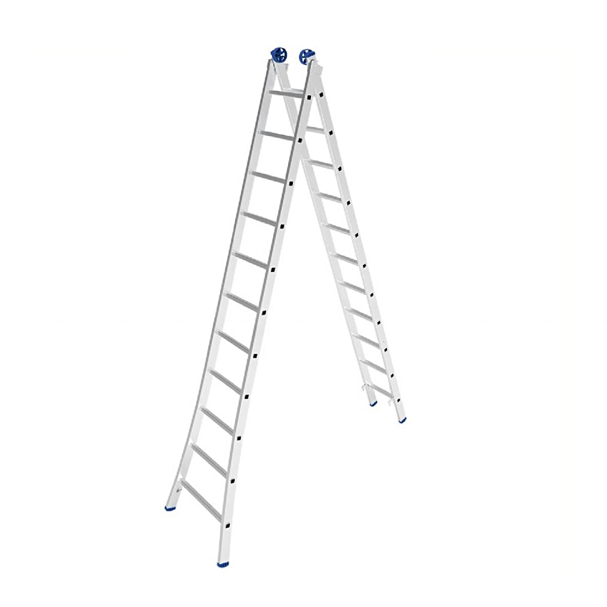 Escalera de tijera doble de aluminio con tapa metálica de 8 pies de altura y capacidad de carga 175 Kg.